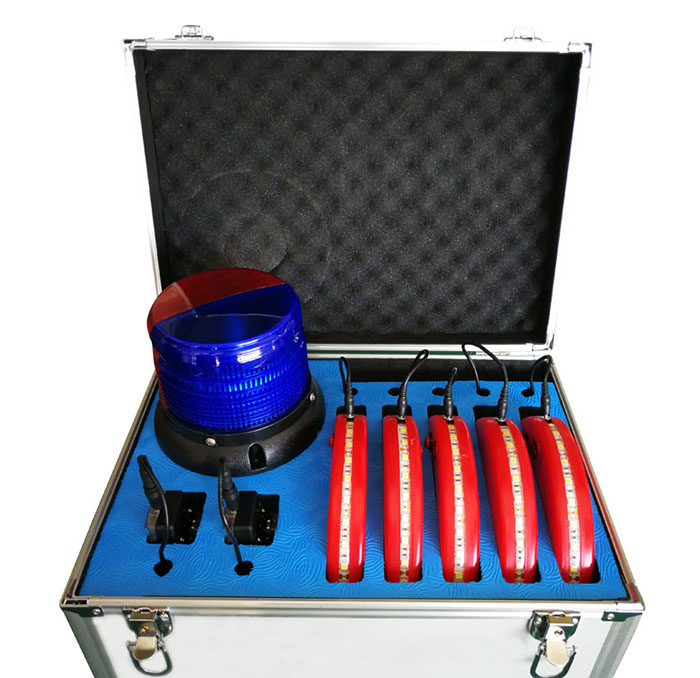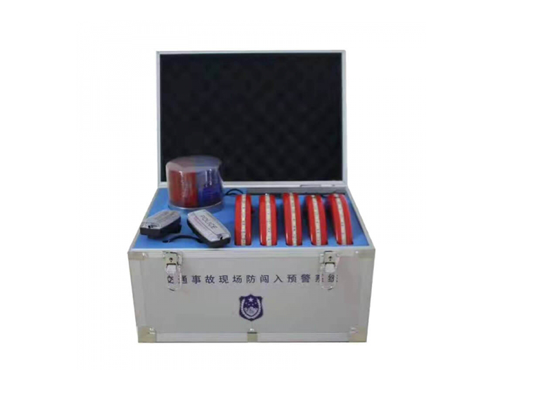 事故現(xiàn)場防闖入預(yù)警系統(tǒng)由四部分組成,分別為五個預(yù)警環(huán),兩個肩燈聲光預(yù)警接收器,一個預(yù)警燈,一個預(yù)警主機(jī)箱。
