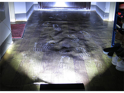 LED可變光寬幅足跡搜索光源,采用大功率LED冷光源,前置有廣角扁平光光學(xué)系統(tǒng)。出射光型為扁平光,出光口50cm處矩形光照面寬為80cm掠射地面,非常清晰顯現(xiàn)地面痕跡,獲得高反差痕跡采證圖像。該產(chǎn)品具有扁平光光型的光學(xué)性能之外,整體結(jié)構(gòu)設(shè)計(jì)輕巧、簡(jiǎn)潔。采用輕質(zhì)鋁合金殼體結(jié)構(gòu),耐摔耐碰,便于清洗污穢與消毒。內(nèi)置>1.5小時(shí)持續(xù)照明可充電池,也可以外接電源照明。設(shè)計(jì)風(fēng)冷裝置,更體現(xiàn)出該產(chǎn)品的實(shí)戰(zhàn)和專(zhuān)業(yè)性能。