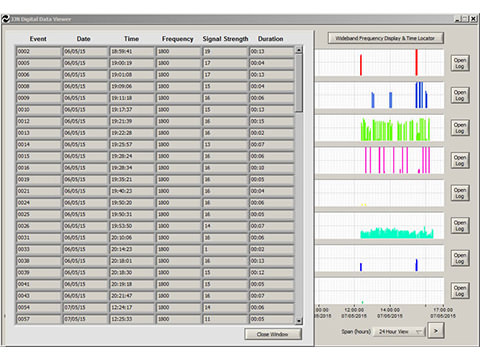 事件日志功能可記錄多達(dá)4000條事件的時(shí)間/日期,所監(jiān)測頻帶,持續(xù)時(shí)間和信號強(qiáng)度。日志可在屏幕上查看,或存儲(chǔ)在U盤中用于在電腦上存儲(chǔ)/查看。