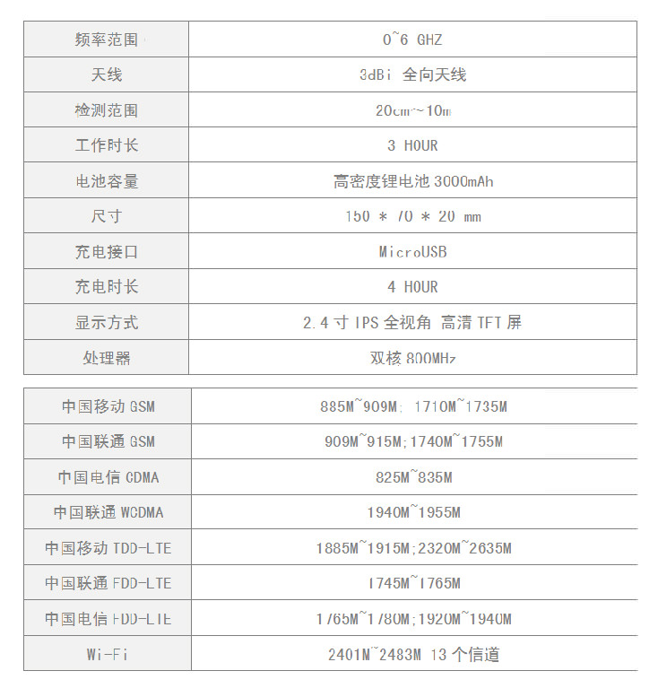 H6 無線環(huán)境分析報警系統(tǒng)針對國內(nèi)的三大運營商的無線通訊制式與協(xié)議以及其他工頻、通信協(xié)議進行全面優(yōu)化,實現(xiàn)高精度、高準確度的無線信號設(shè)備的定位與防范。