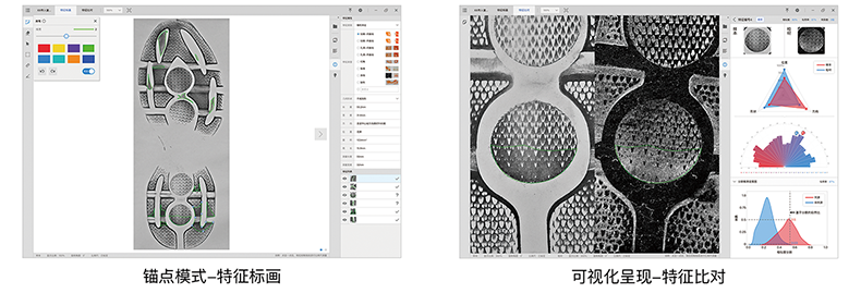 采用手指和筆觸結(jié)合的形式進(jìn)行系統(tǒng)的交互和操作,首次采用錨點(diǎn)方式進(jìn)行特征自由標(biāo)畫,使得系統(tǒng)具備PS級(jí)別的特征標(biāo)畫能力,提升用戶整體交互感知。
