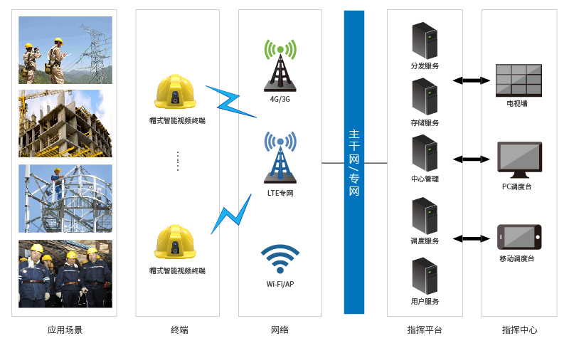 帽式智能視頻終端采用高速處理器,集高清視頻、音頻、4G和WiFi無線通訊、定位、存儲、報警模塊于安全帽內(nèi)。通過4G、WiFi無線網(wǎng)絡(luò)實時音視頻信息傳輸、語音對講,可實時記錄現(xiàn)場情況、收集證據(jù)并遠程指導維修施工等。產(chǎn)品可廣泛應(yīng)用于電力巡檢、工地巡查、鐵塔作業(yè)、爆破監(jiān)管、搶險救災及檢修遠程指導等場景。